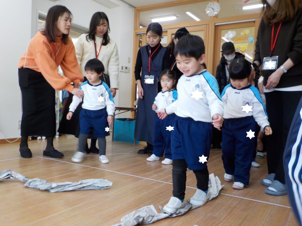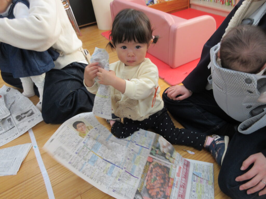 今回のかるがもでーは、ふれあい遊びや新聞紙遊びを楽しみました。