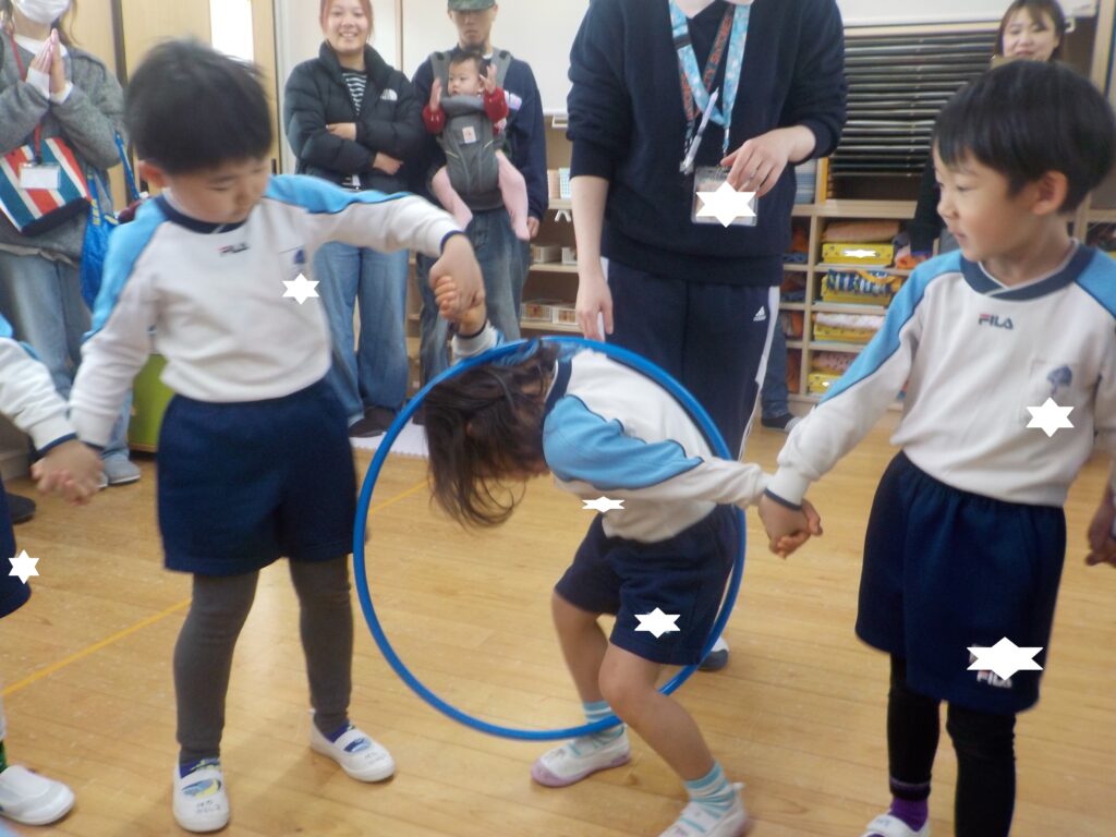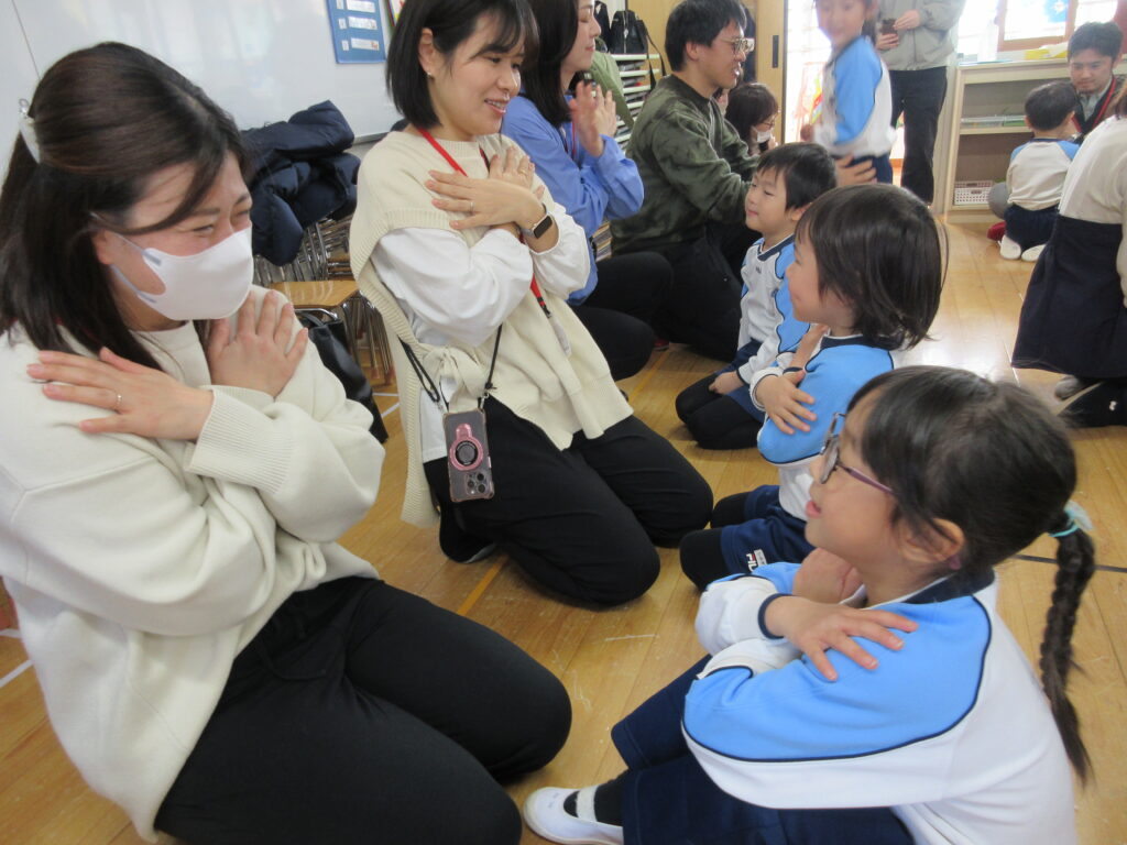 今年度最後の、年中組の参観がありました。全園児で体操をした後は、クラスのお部屋でふれあい遊びやゲーム遊びを親子で楽しみました。
