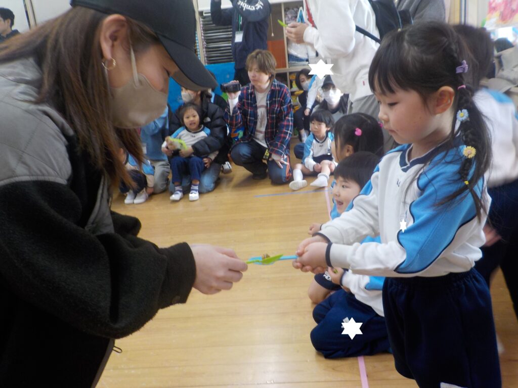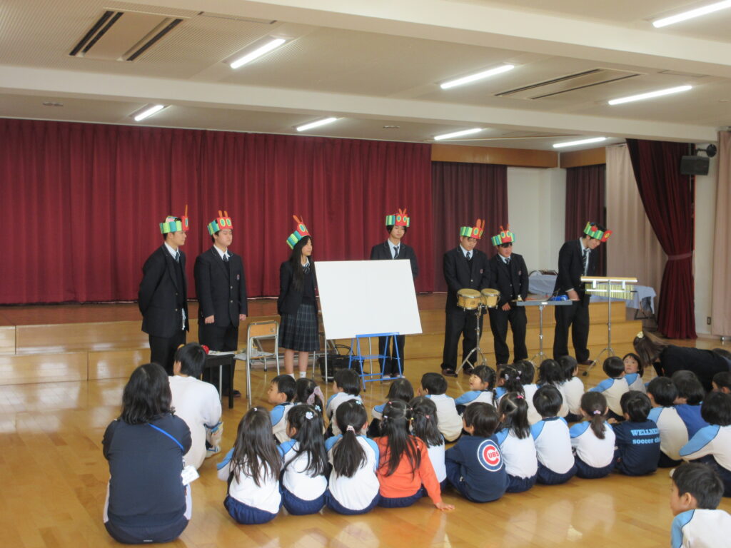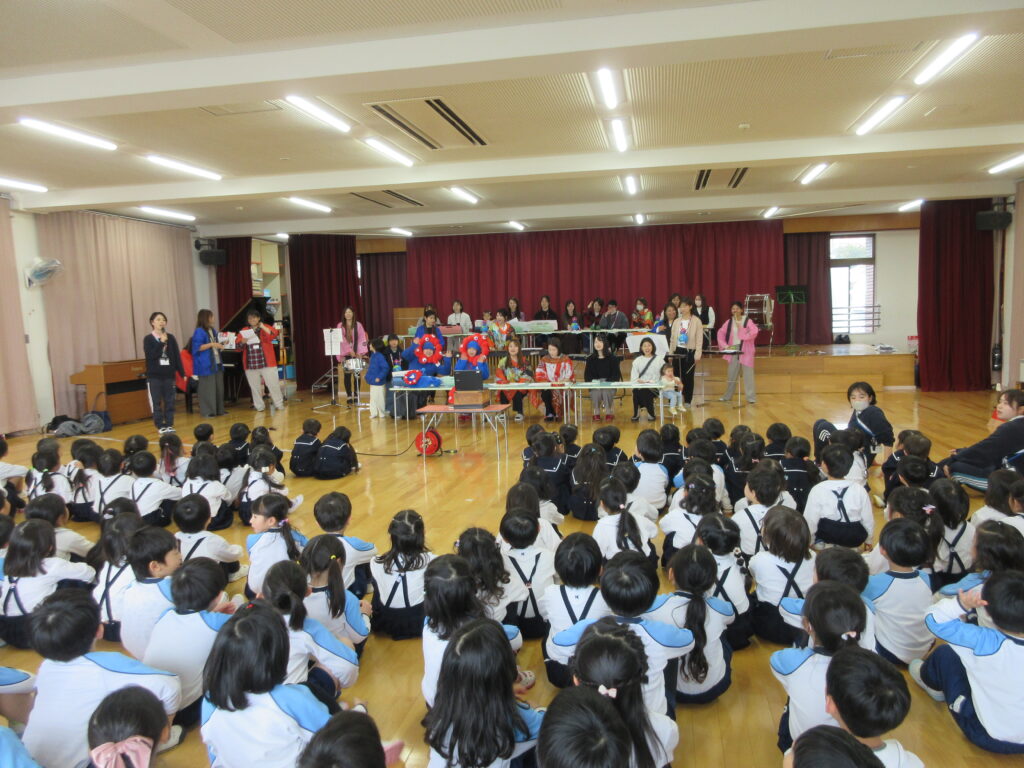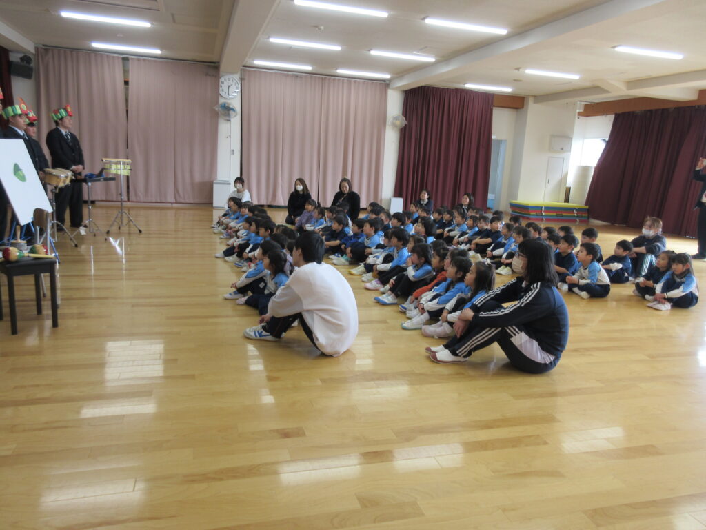 歌を歌い、いろいろな楽器で効果音もつけながら、お話をきかせてくれたので、子どもたちもとても真剣にみて楽しんでいました。お兄さん、お姉さんありがとうございました。