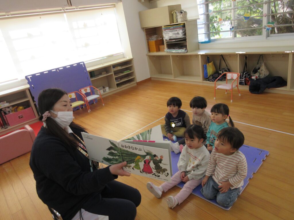 お帰りの前に、年長組さんが、絵本を読んでくれました。
