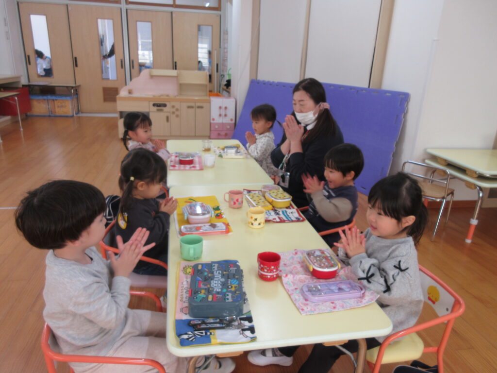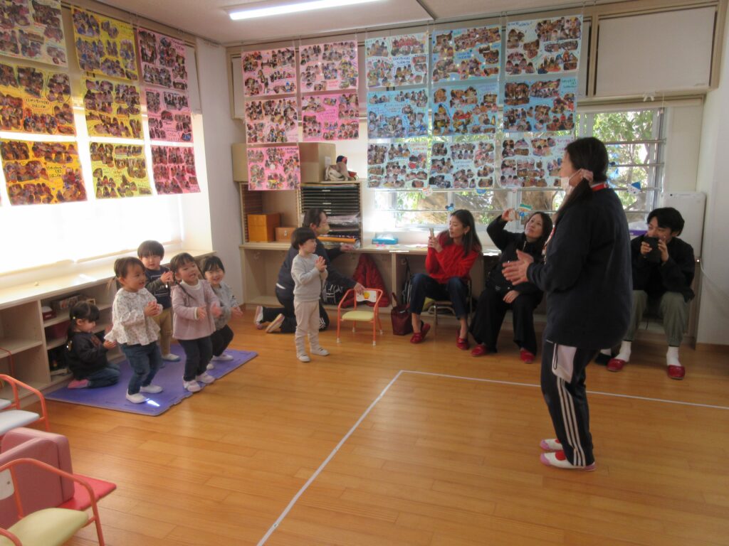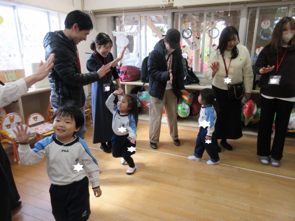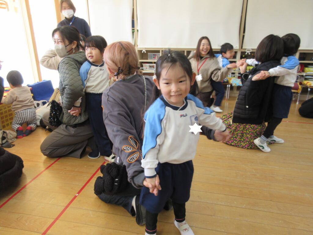 今年度最後の年少・りす組の参観がありました。おうちの人がきてくれることを楽しみにしていた子どもたちです。