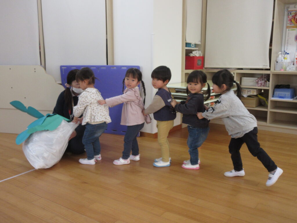 今回は、「おおきなかぶ」の絵本をよんで、ごっこ遊びを楽しみました。