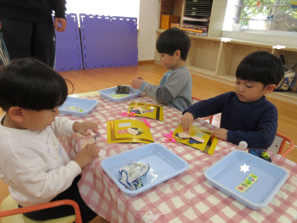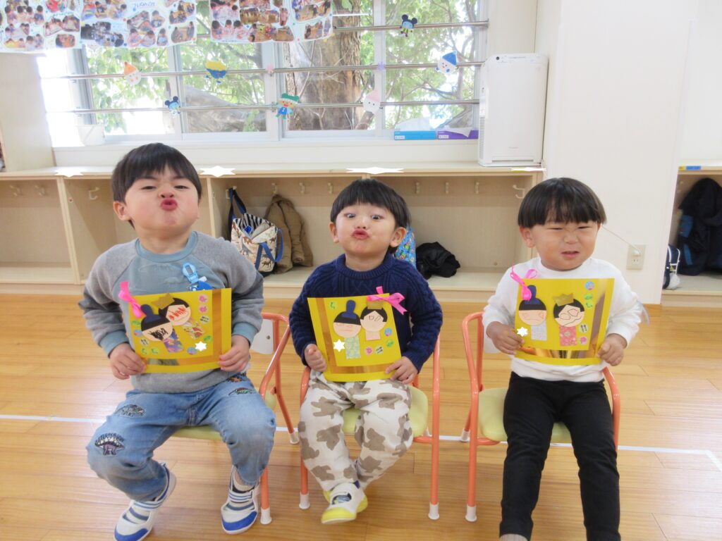 今年度最後のプレ幼稚園!ひなまつりの飾りを作りました。そしてお迎えの時間には、プレ幼稚園で遊んできたことをみていただく発表会をしました。