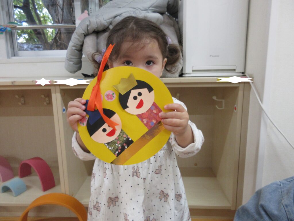 今年度最後のプレ幼稚園、うさぎ組さんも好きな遊びを楽しんだ後に、おひなまつりの製作を楽しみました。