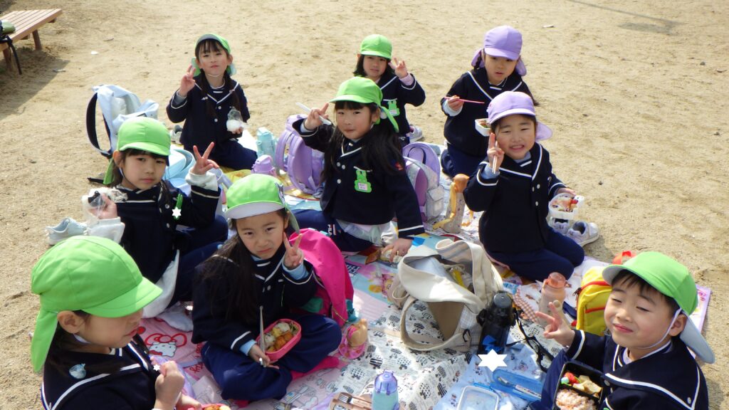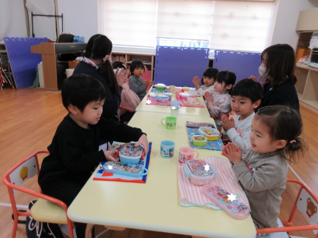 今週からひよこ組は、お弁当が始まりました。そして年長組のお友だちがお弁当の準備も手伝ってくれました。