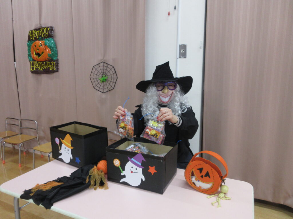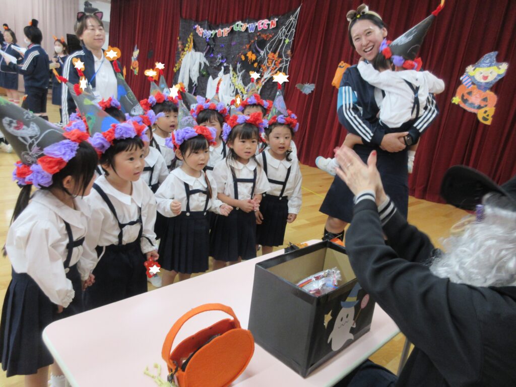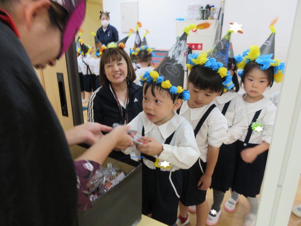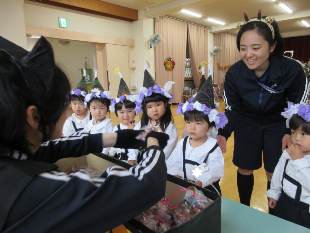「トリックオアトリート!」と言い、おばけにお菓子をもらいましたよ。