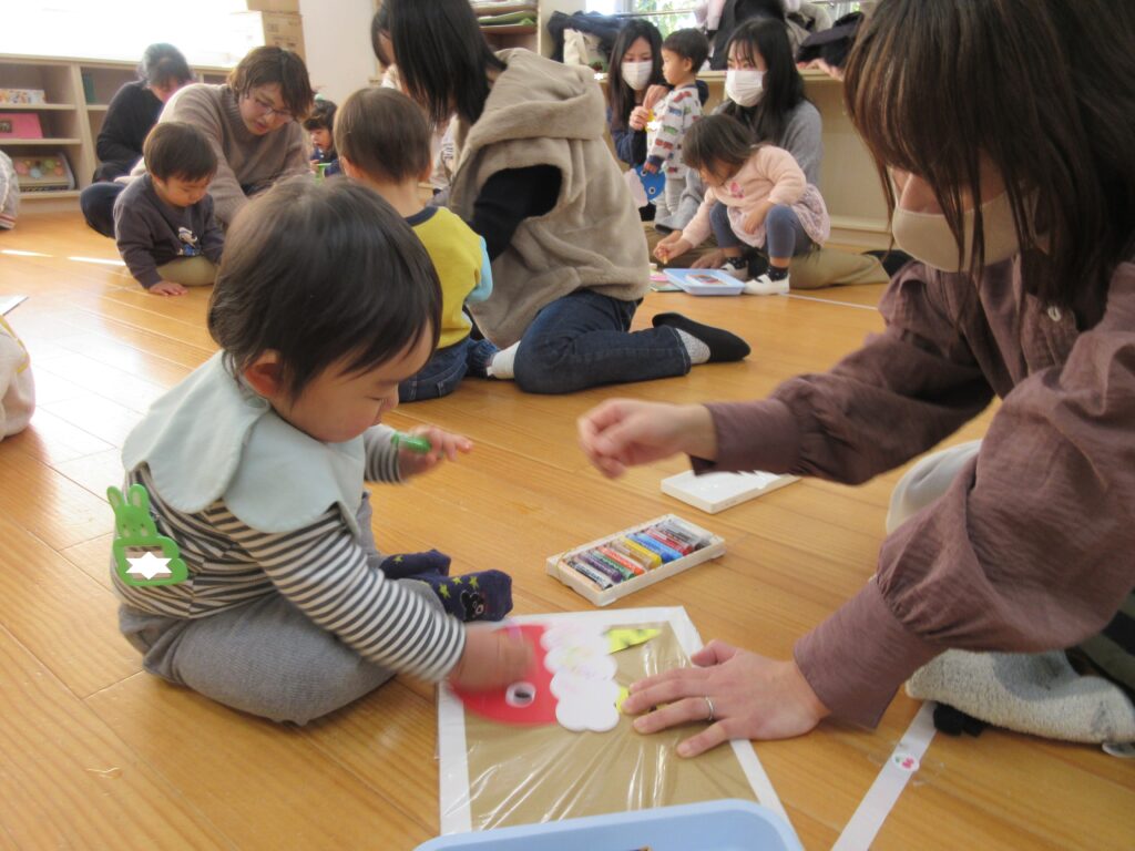 プレのお部屋にはないおもちゃで遊んだり、一緒に朝の歌を歌ったりして楽しく過ごすことができました。