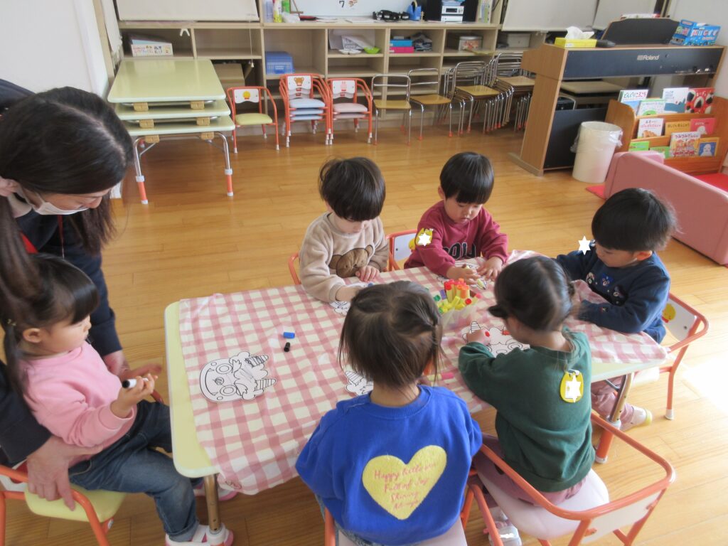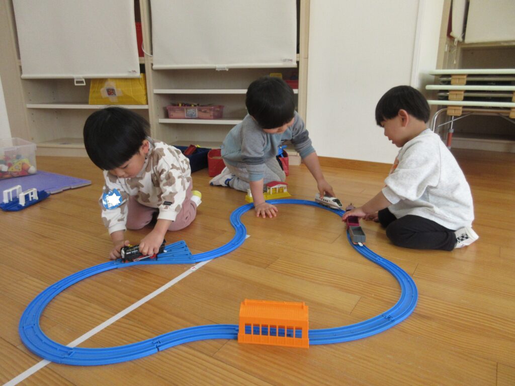プレのお部屋にはないおもちゃで遊んだり、一緒に朝の歌を歌ったりして楽しく過ごすことができました。