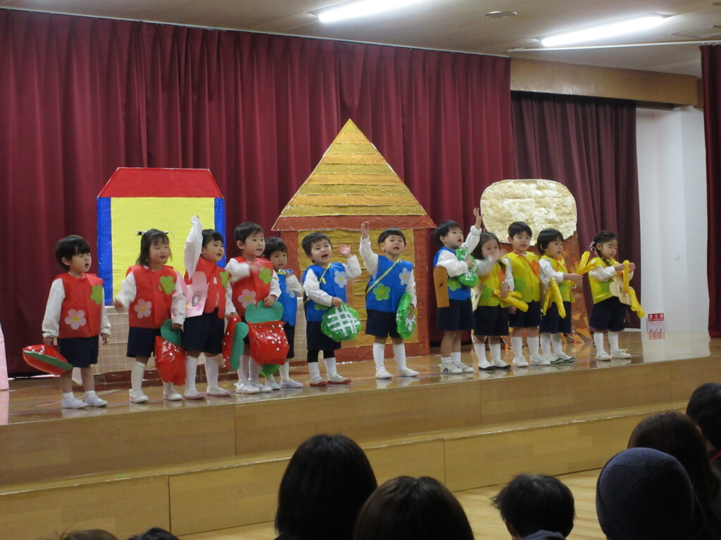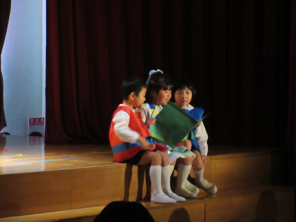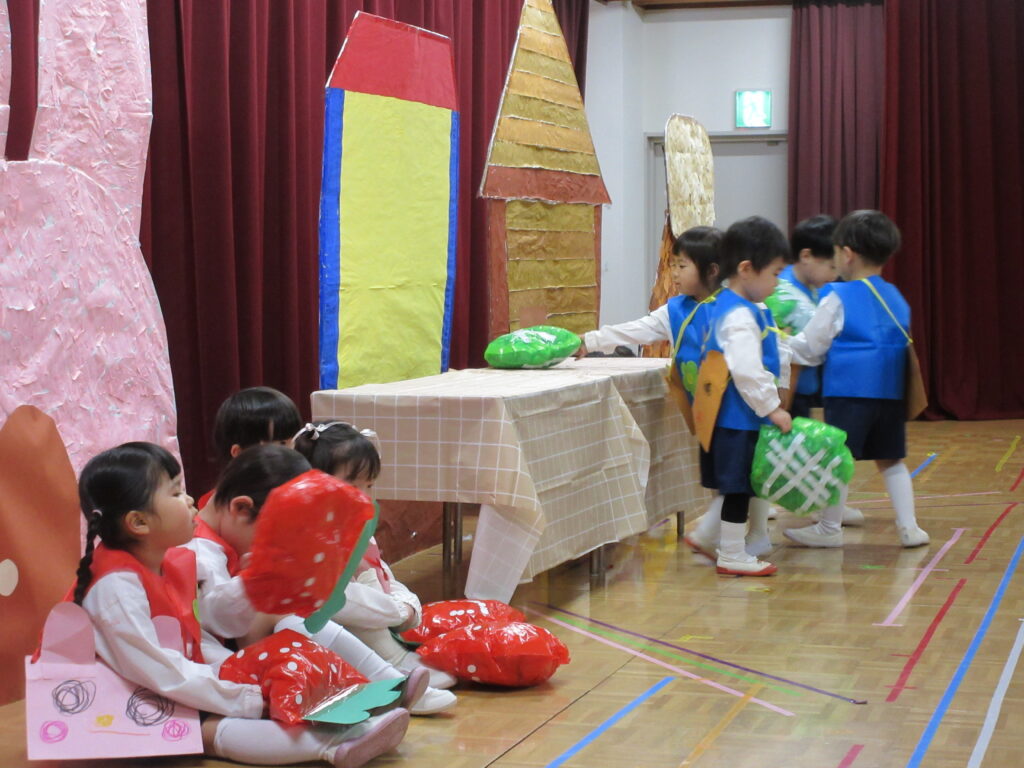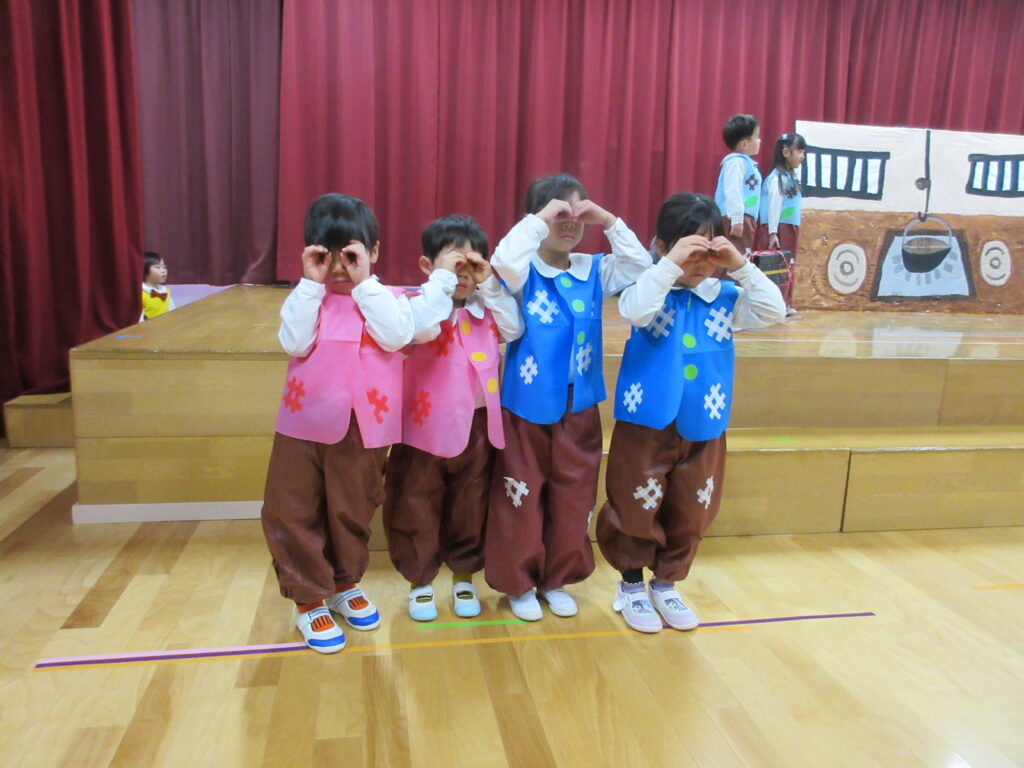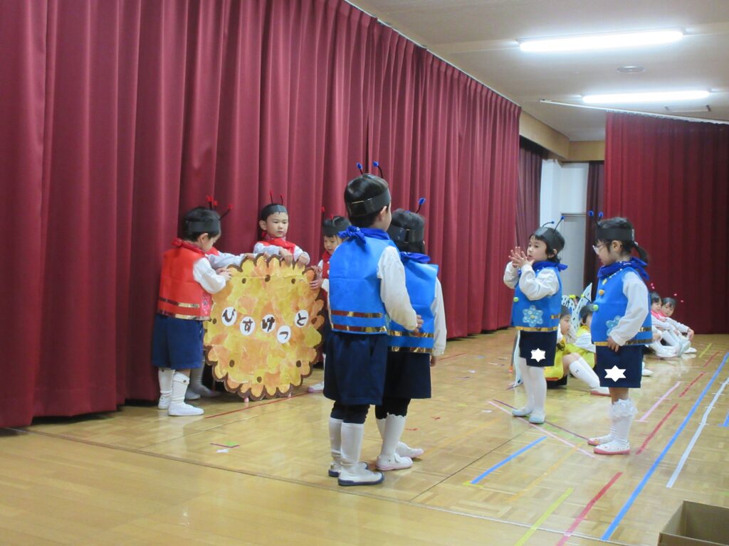 2日、3日に生活発表会のリハーサルがありました。舞台にたつクラスとお客さんになるクラスにわかれて、楽しみました。