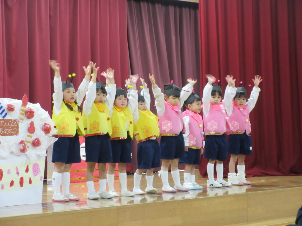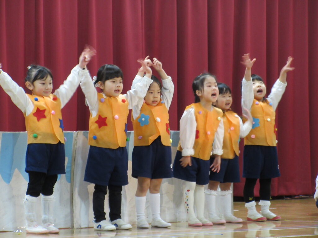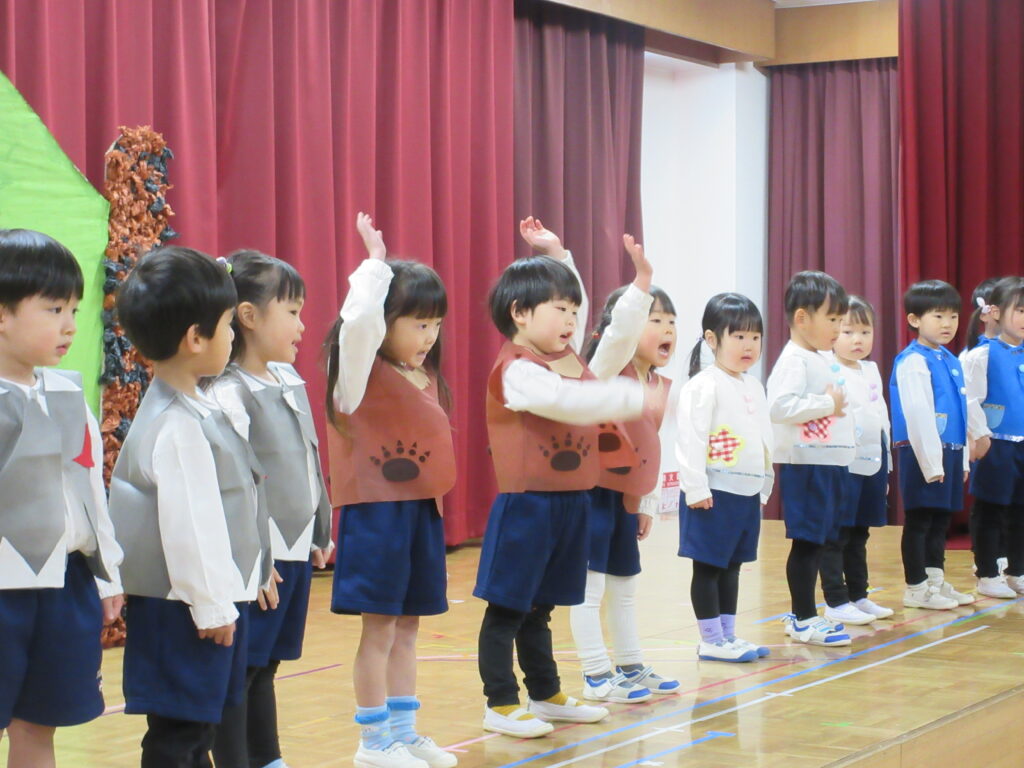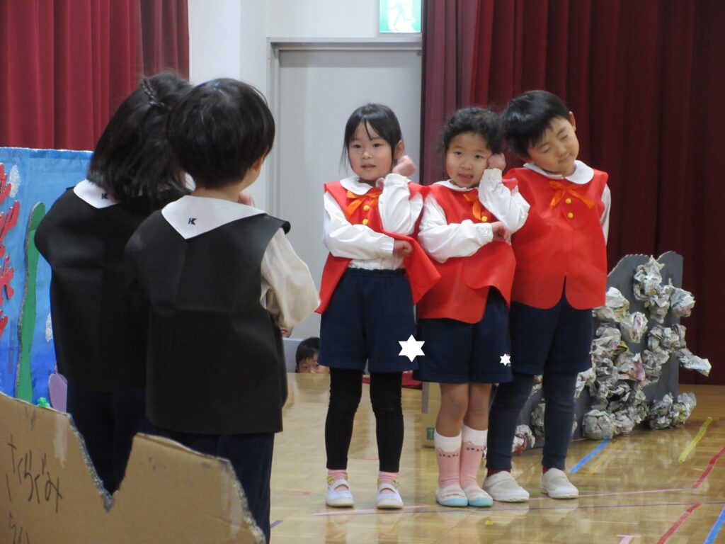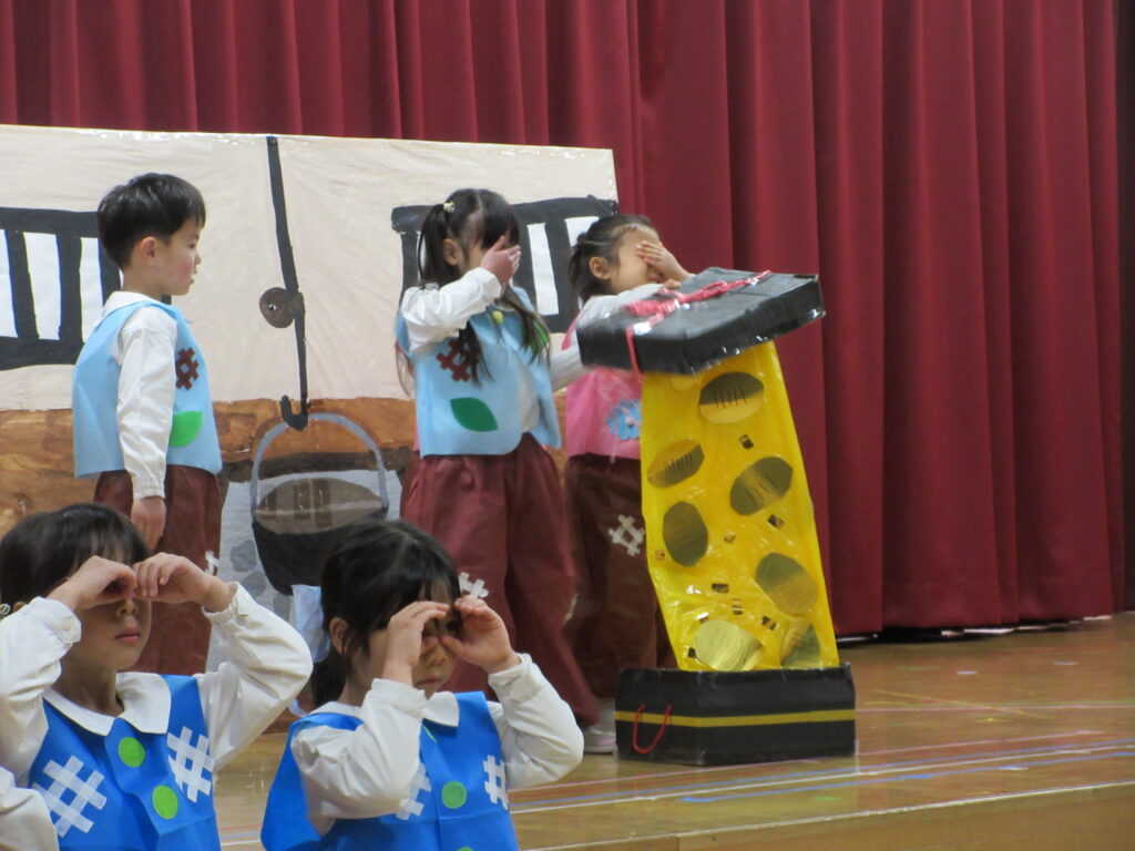 2日、3日に生活発表会のリハーサルがありました。舞台にたつクラスとお客さんになるクラスにわかれて、楽しみました。
